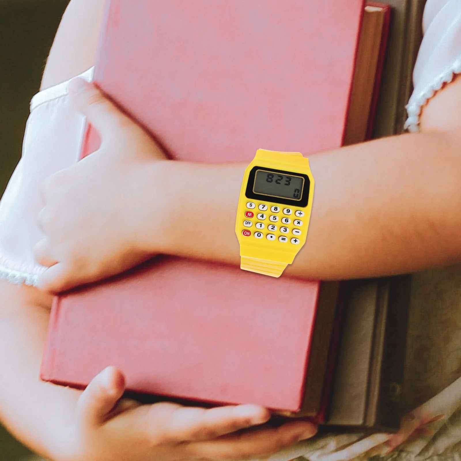 Home  ⇨  Kids Calculator Durable Portable Math Help Creative Design Electronic Stopwatch Calculation Watch For Children Birthday Gifts
