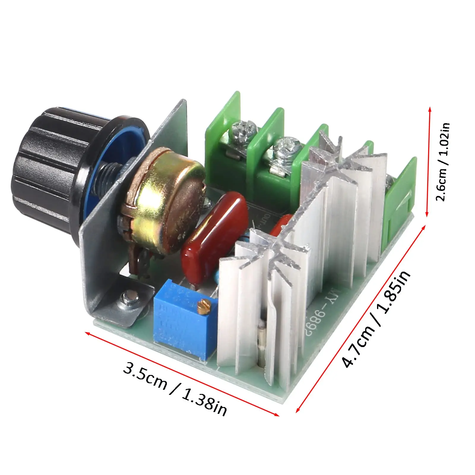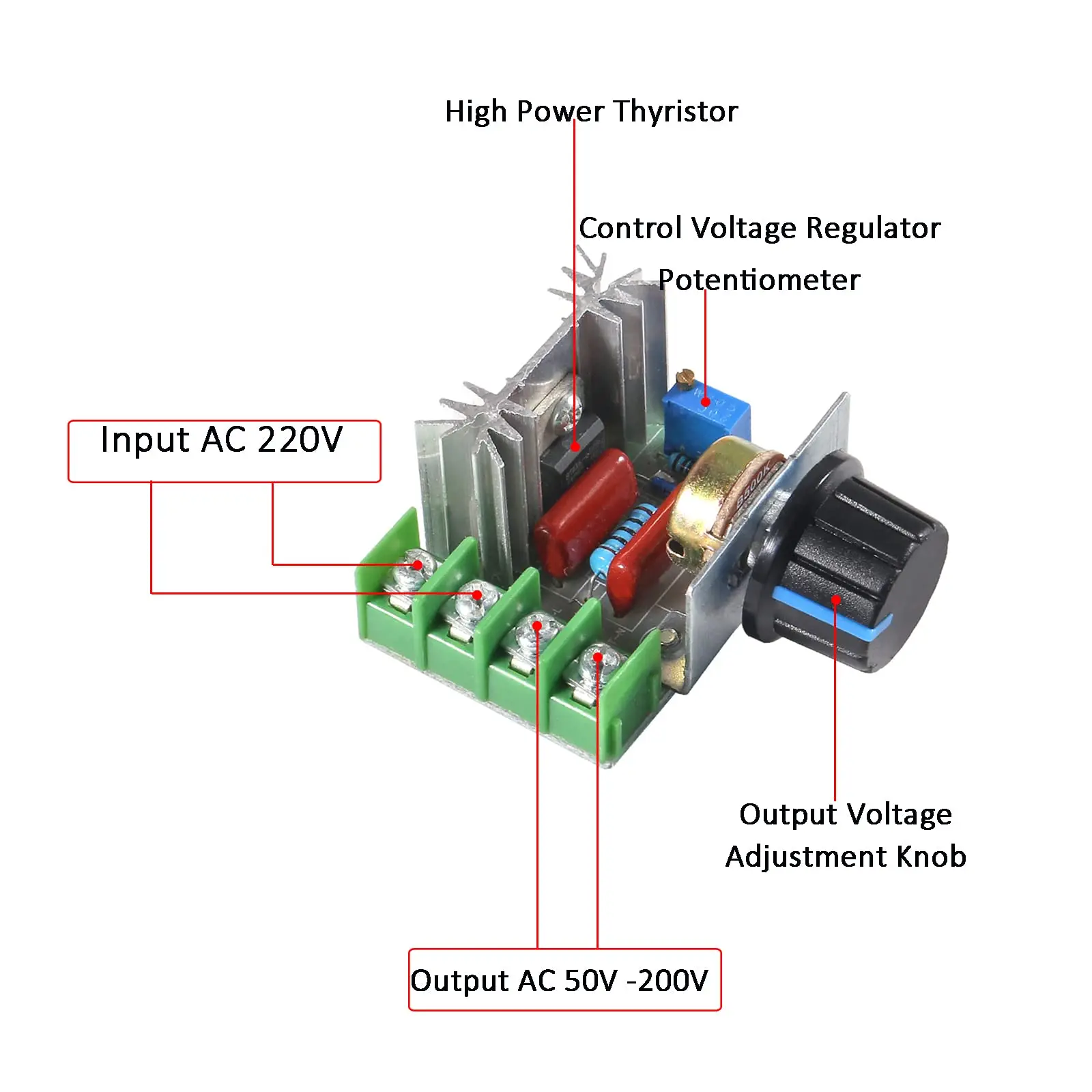 This pressure regulator with two-way high power silicon controlled, potentiometer have nuts, can use not need add any components, very convenient and practical