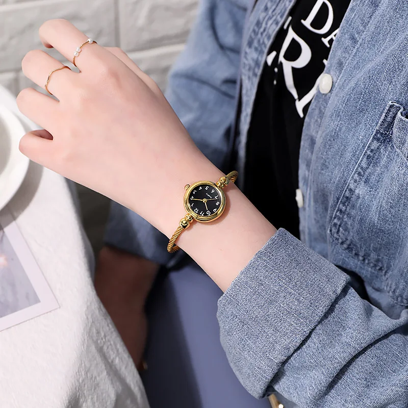 Women Watches Small Gold Bangle Bracelet Watch Stainless Steel Retro Ladies Quartz Wristwatch Clock Fashion Casual Dress Watch